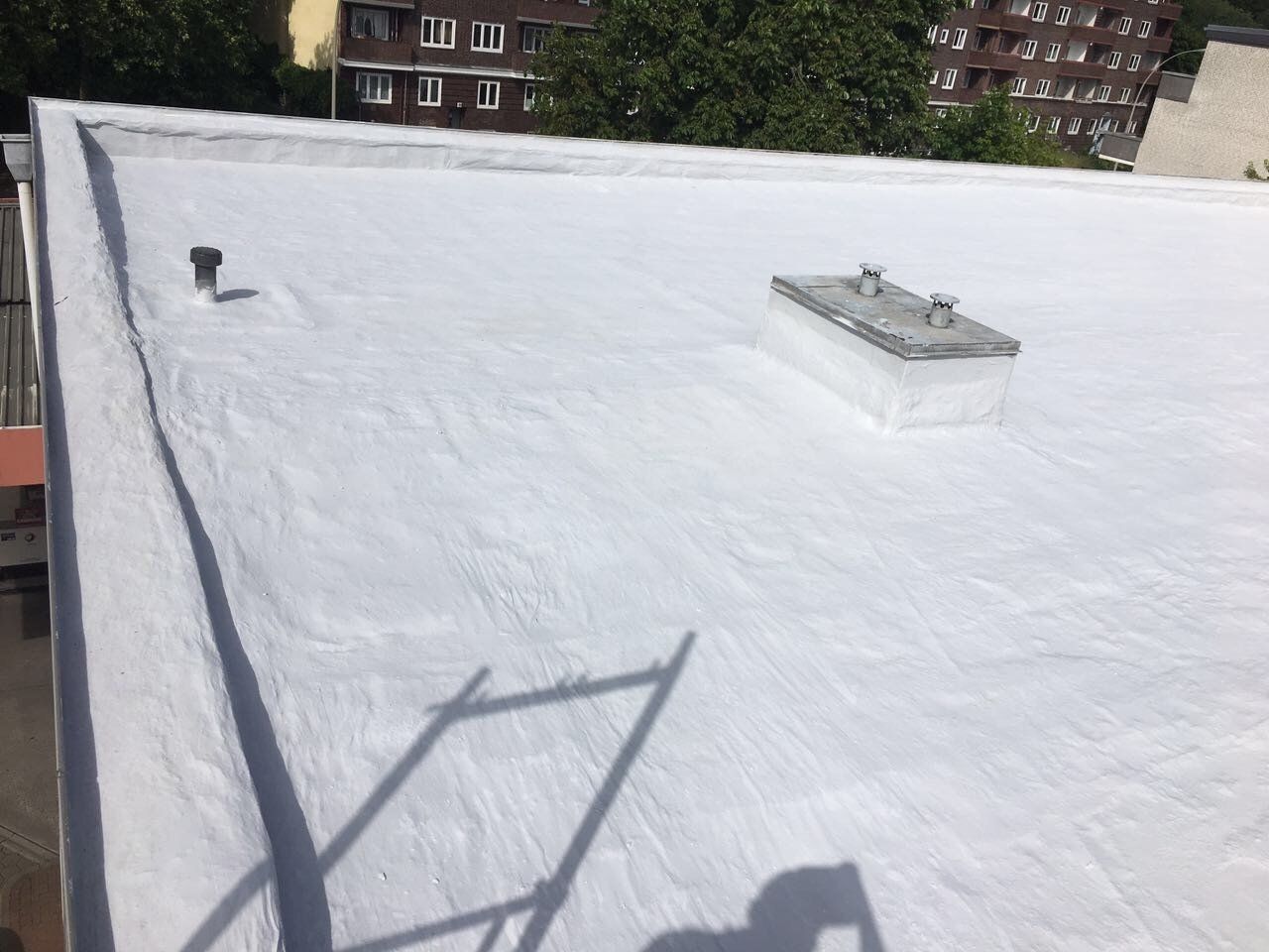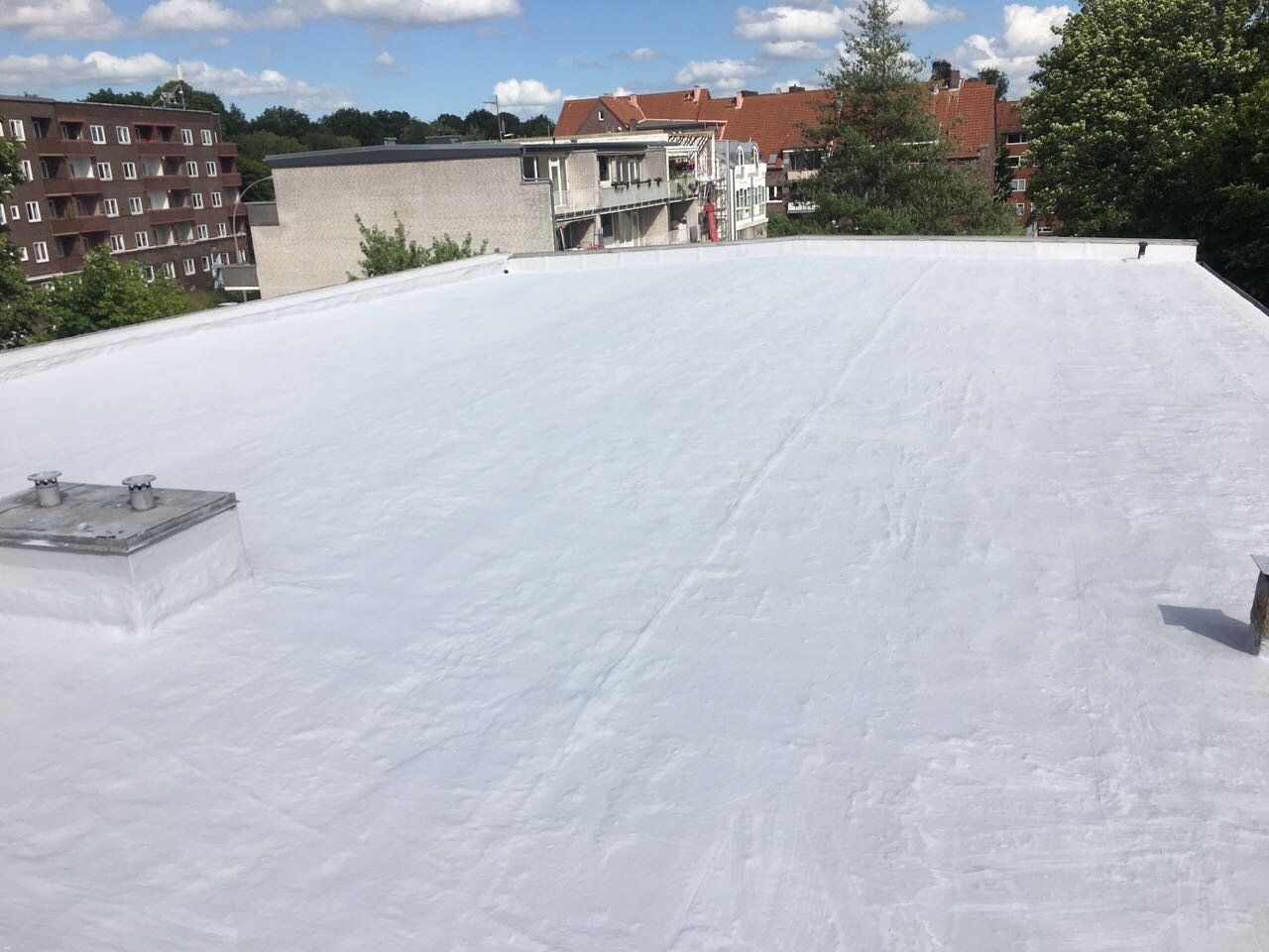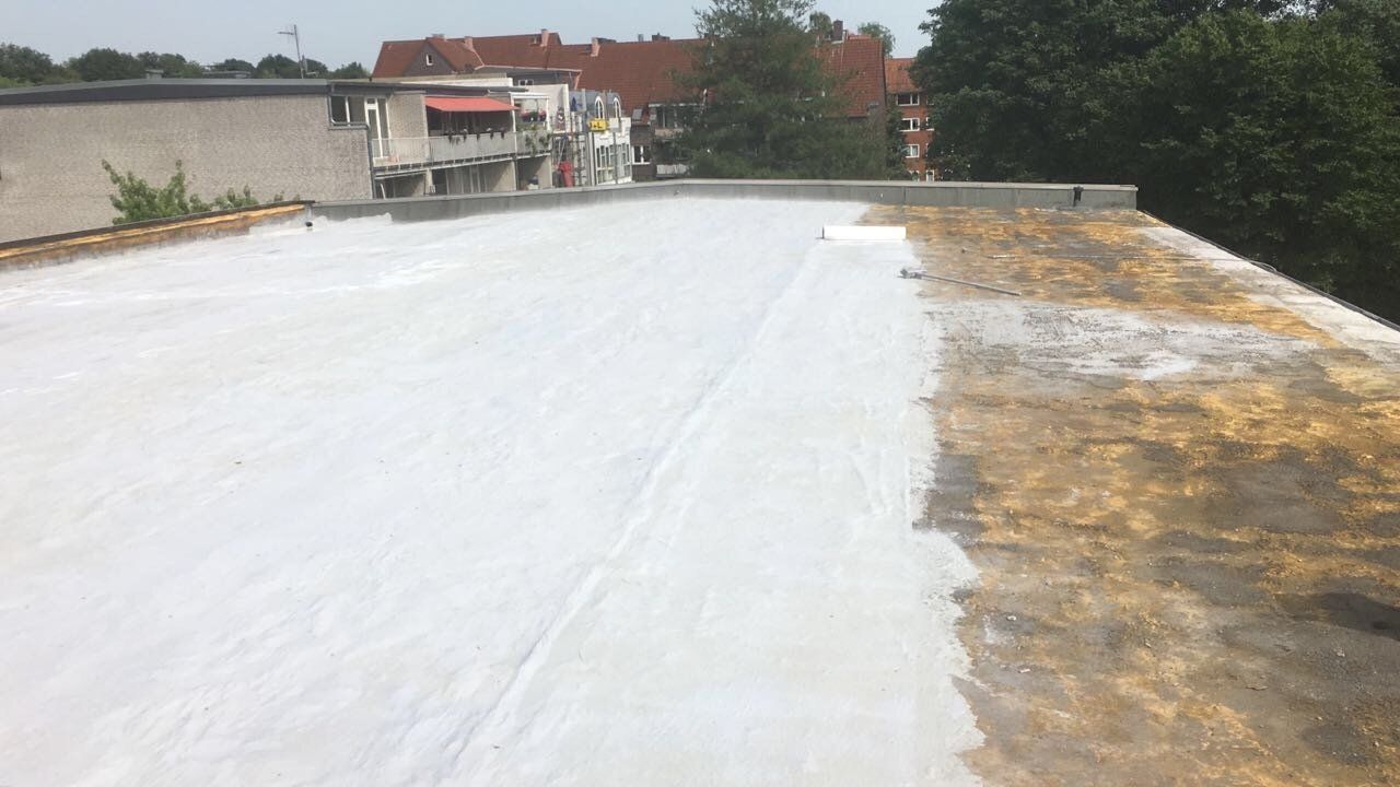 A flat roof foamed with PUR roof spray foam offers long-term flat roof sealing and flat roof insulation in one step. This is particularly noticeable in the cost-effectiveness of the process for large industrial roofs, but also for private bungalow owners. In the industry, flat roofs have been foamed with PUR roof spray foam as flat roof sealing with simultaneous flat roof insulation since the 1970s. Since PUR roof spray foam - also called PUR in-situ foam (since it is manufactured on site) - like any other insulation material - is only partially UV-resistant, it must be protected from UV radiation and coated with suitable UV protection.