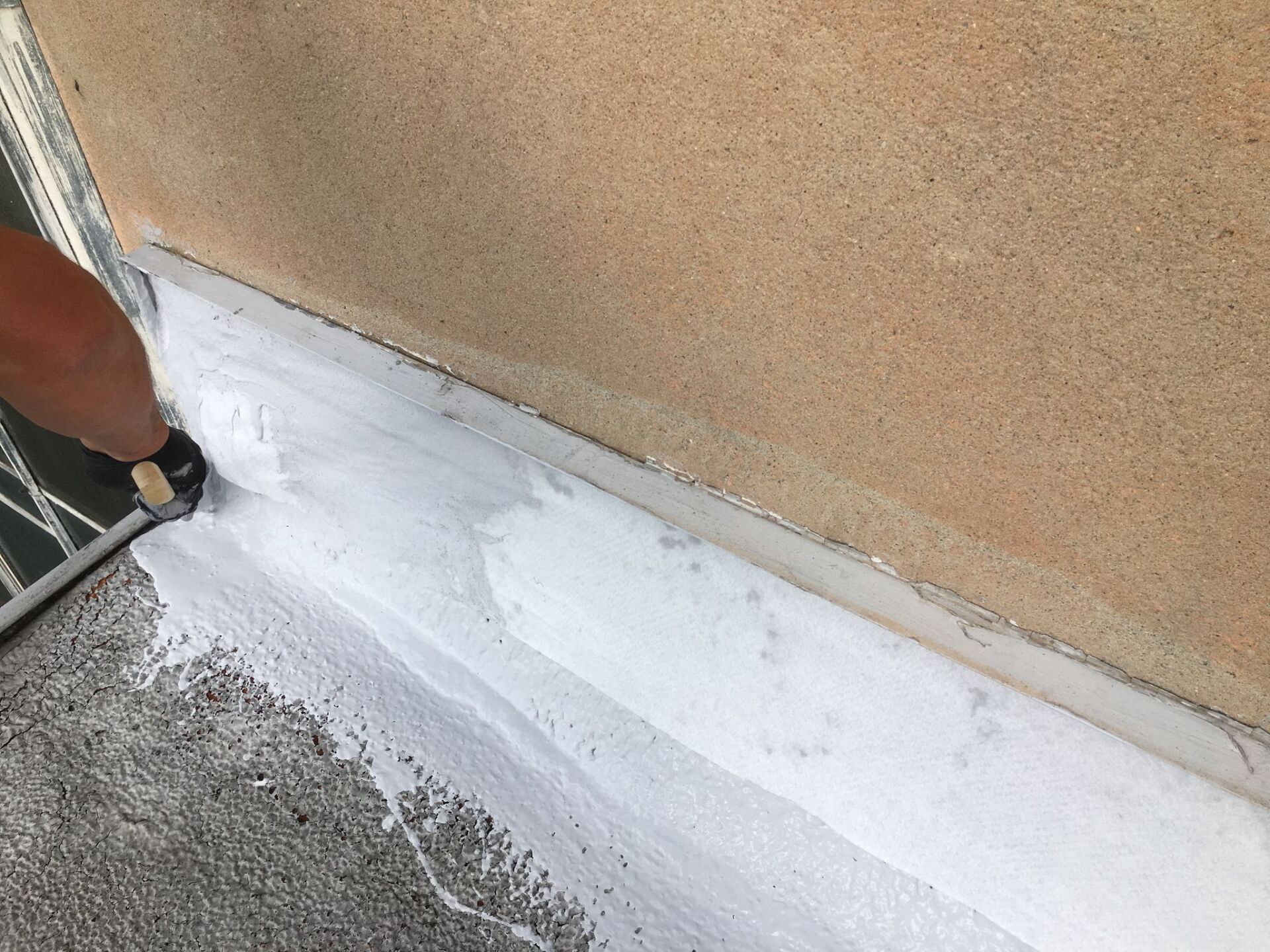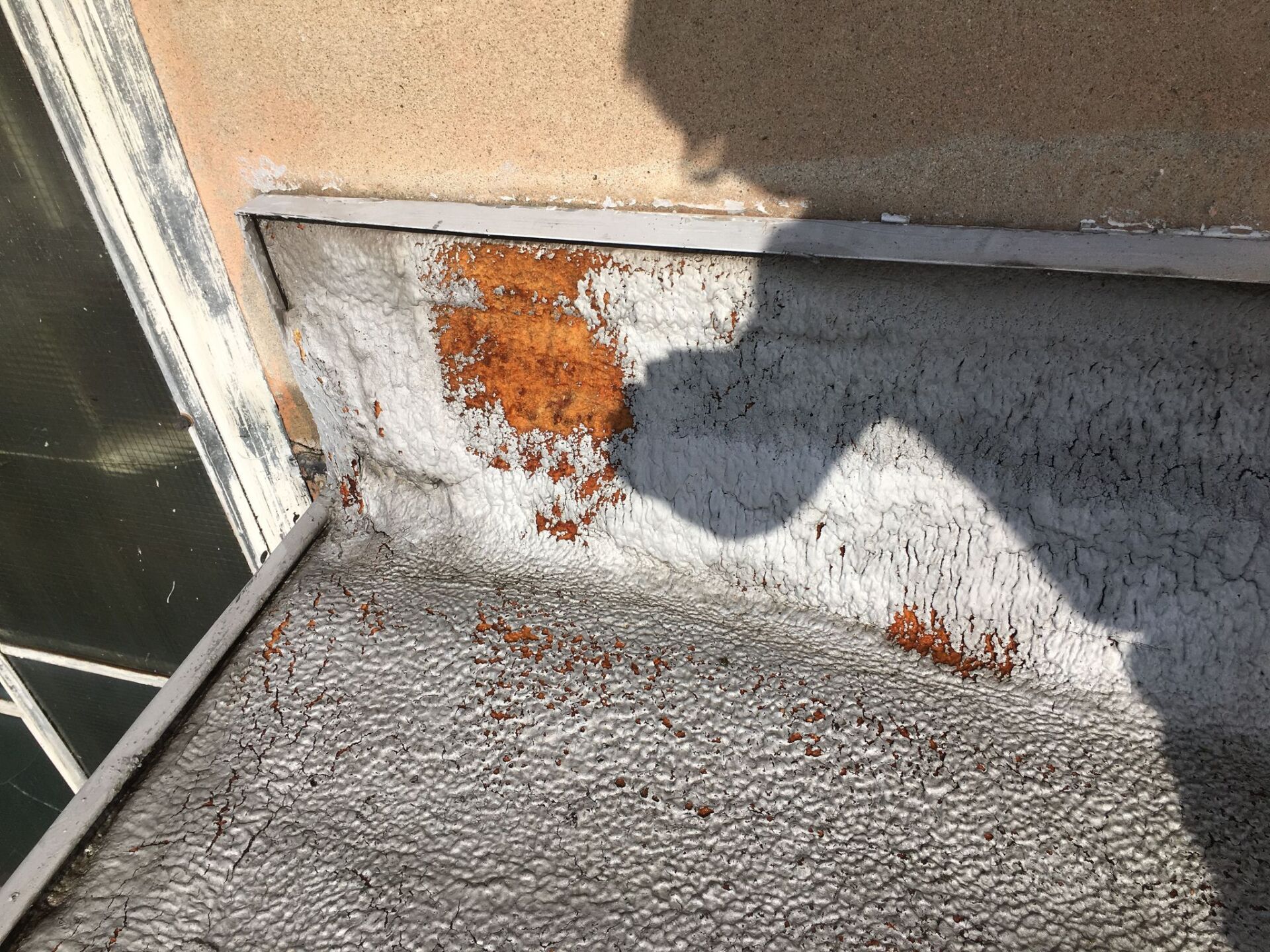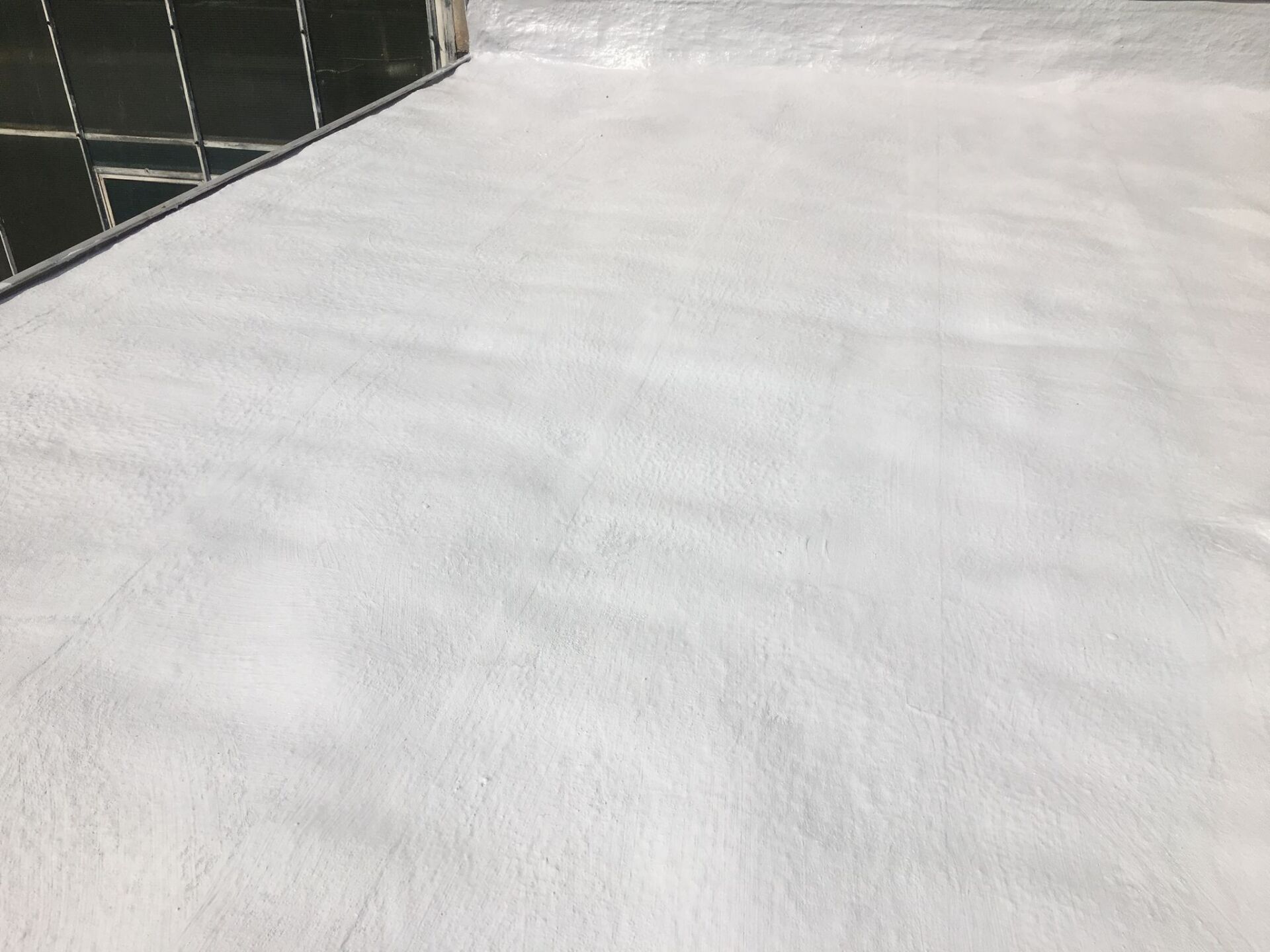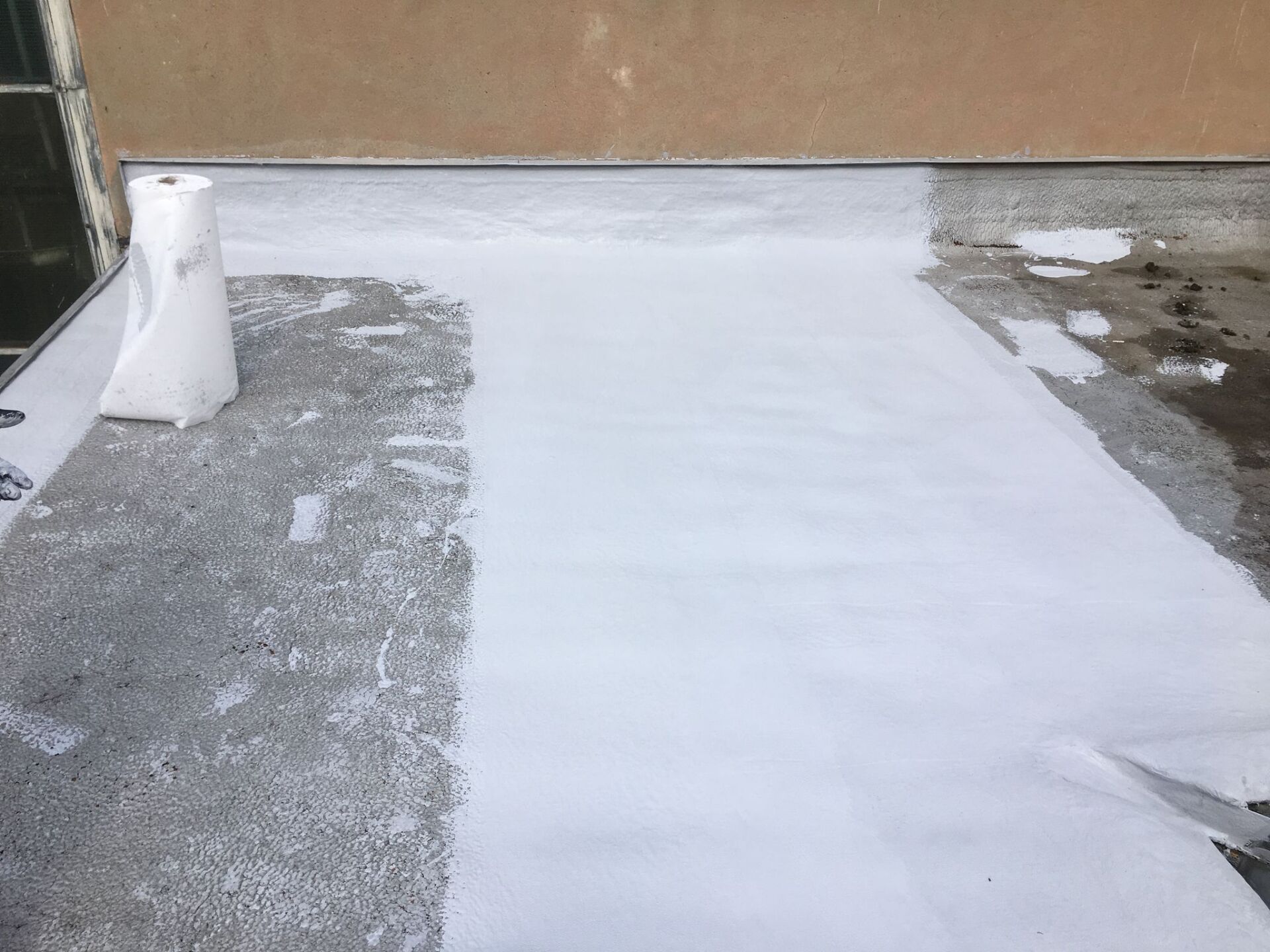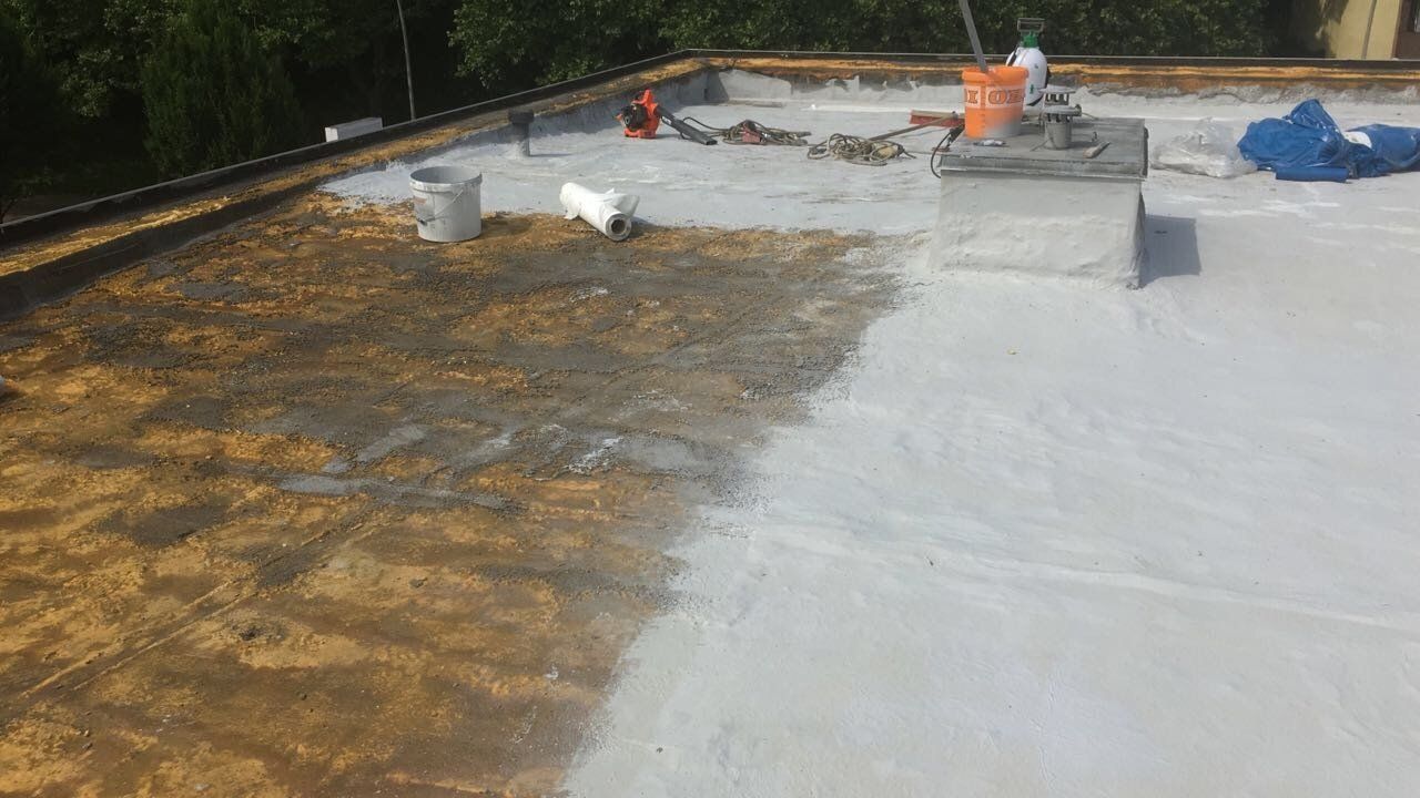 Old foam roof renovation UV protection with liquid plastic
