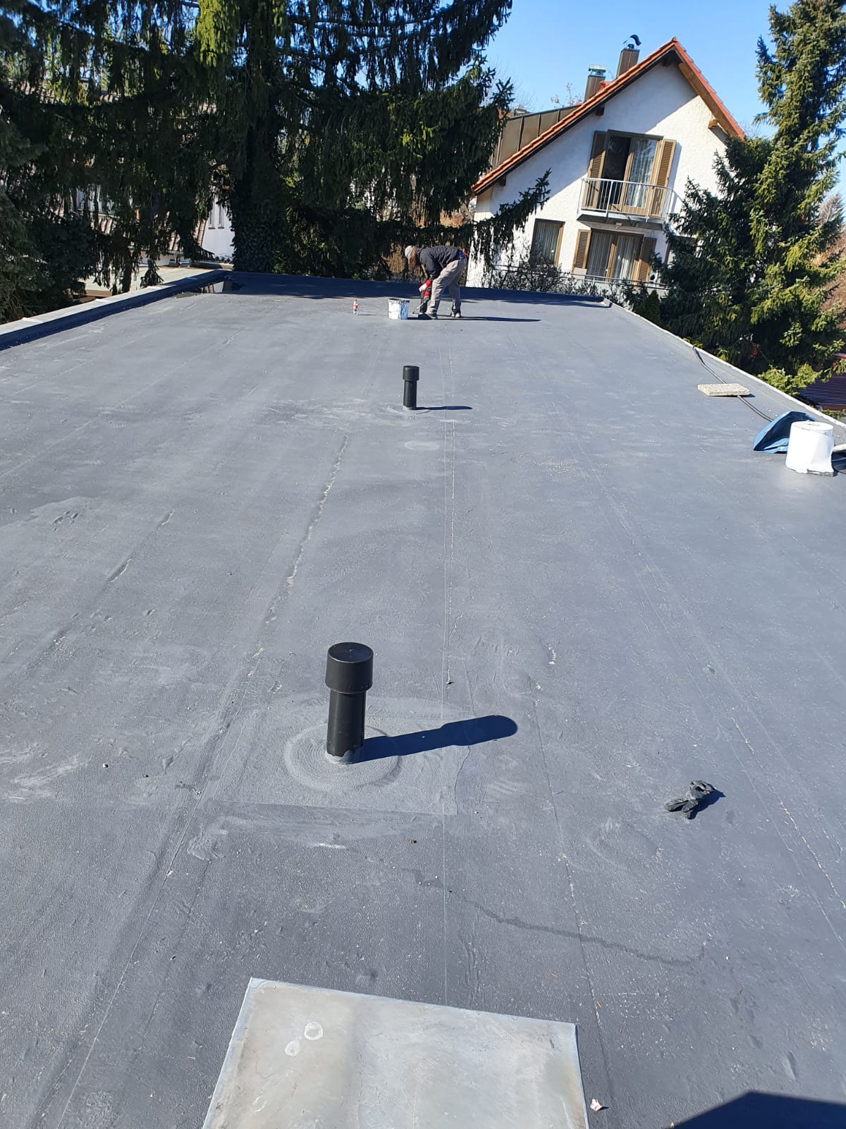 Our liquid plastic is open to diffusion (breathable) so that residual moisture from the new flat roof sealing with liquid plastic can dry out.