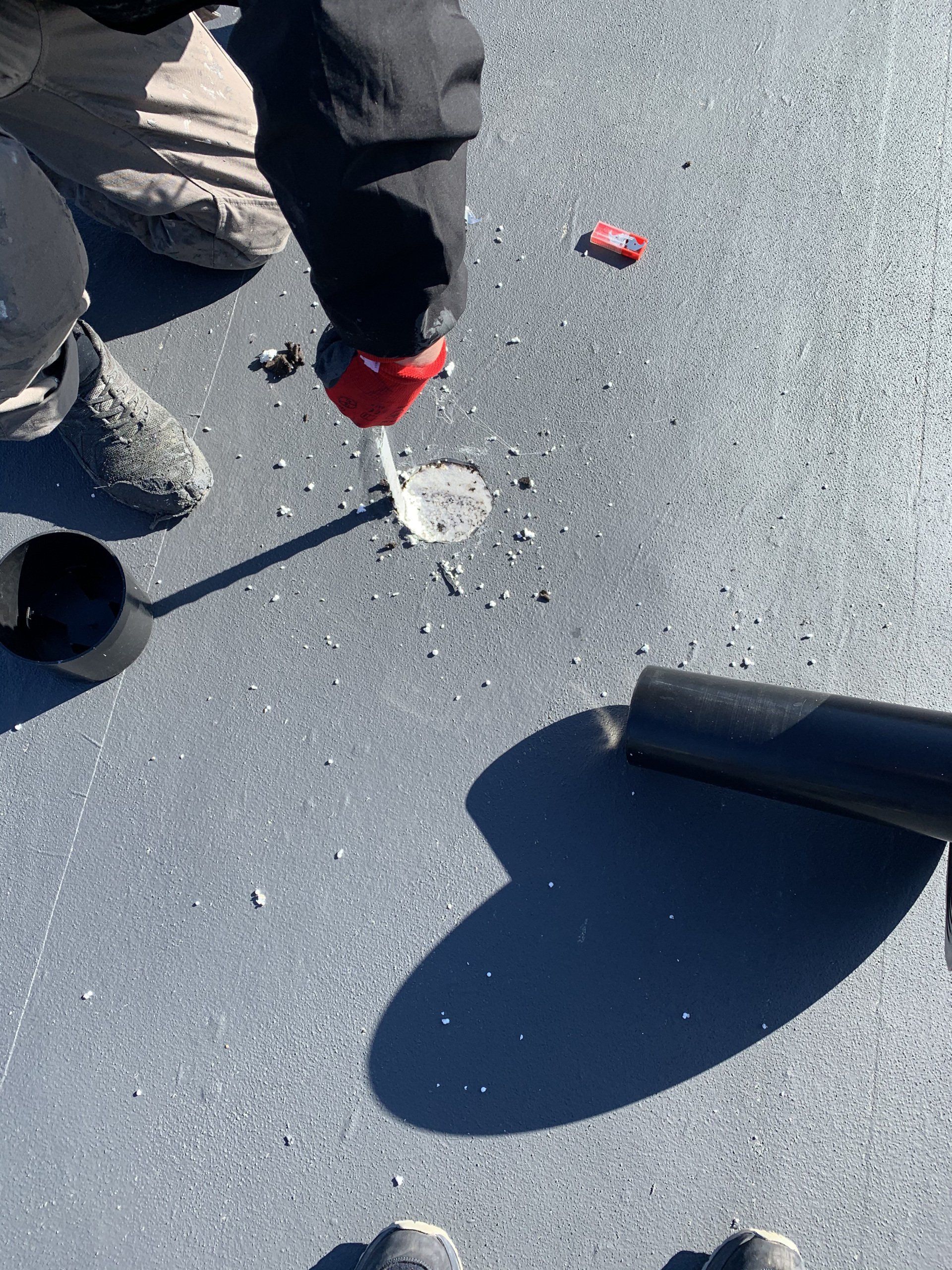 Flat roof ventilators are installed here, through which the residual moisture in the flat roof and the old flat roof insulation can evaporate.
