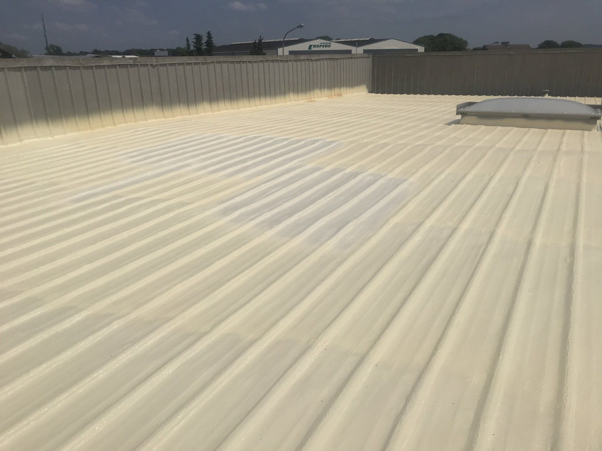 L'isolamento del tetto piano con schiuma per tetto PUR (chiamata anche schiuma locale PUR, schiuma spray per tetto) offre la soluzione più efficace ed economica per sigillare e isolare un tetto piano senza soluzione di continuità e senza giunzioni in una sola operazione e con attualmente i migliori valori di isolamento. L'isolamento del tetto piano con la schiuma per tetti PUR Ortschaum può essere applicato in diversi spessori (strati) a seconda delle esigenze e soddisfa quindi ogni esigenza, dalla semplice impermeabilizzazione del tetto piano all'isolamento termico secondo EnEv (ordinanza sul risparmio energetico). Infine, la schiuma del tetto PUR è rivestita in due strati con la nostra plastica liquida come protezione UV per proteggerla permanentemente dai raggi solari.