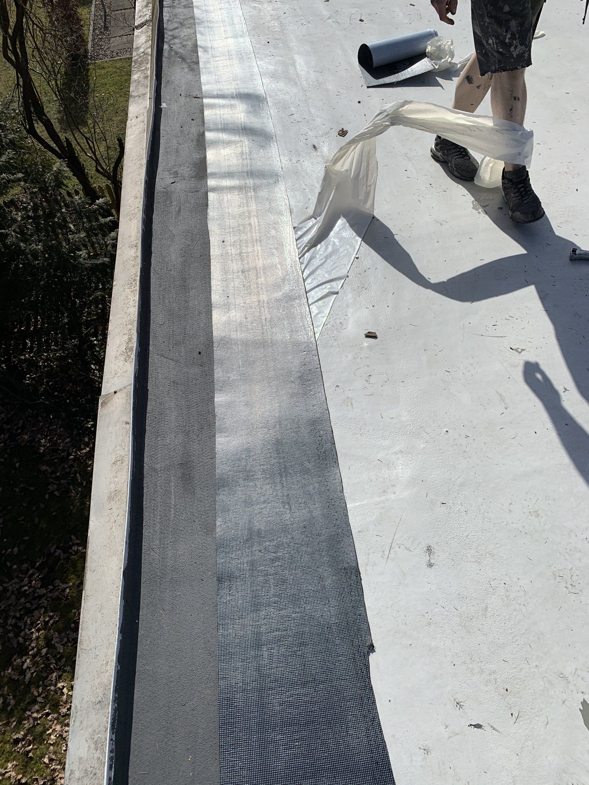 Si può rimediare a questo problema sigillando un tetto piano con plastica liquida e vello.